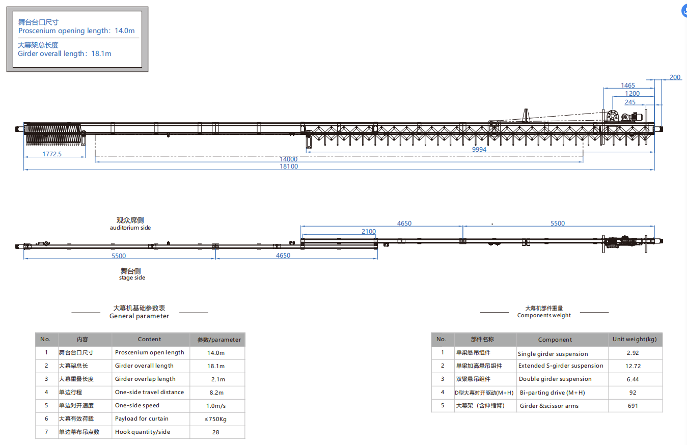 大幕机选型图 14.0m/18.1m